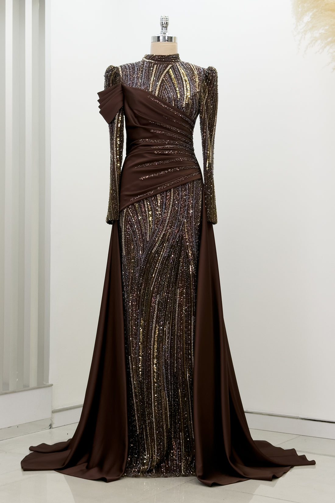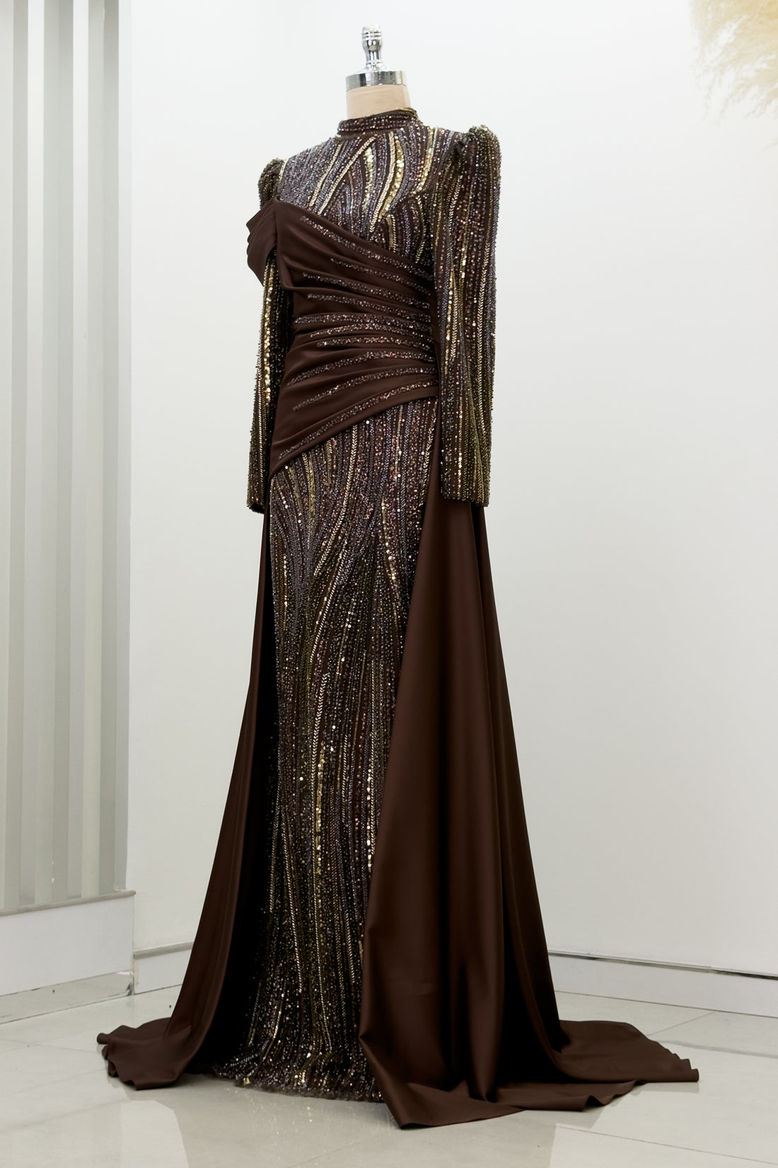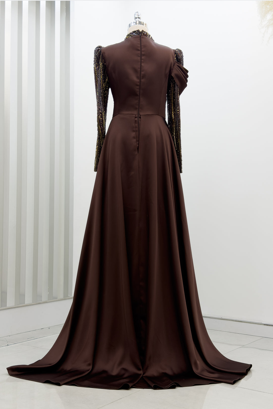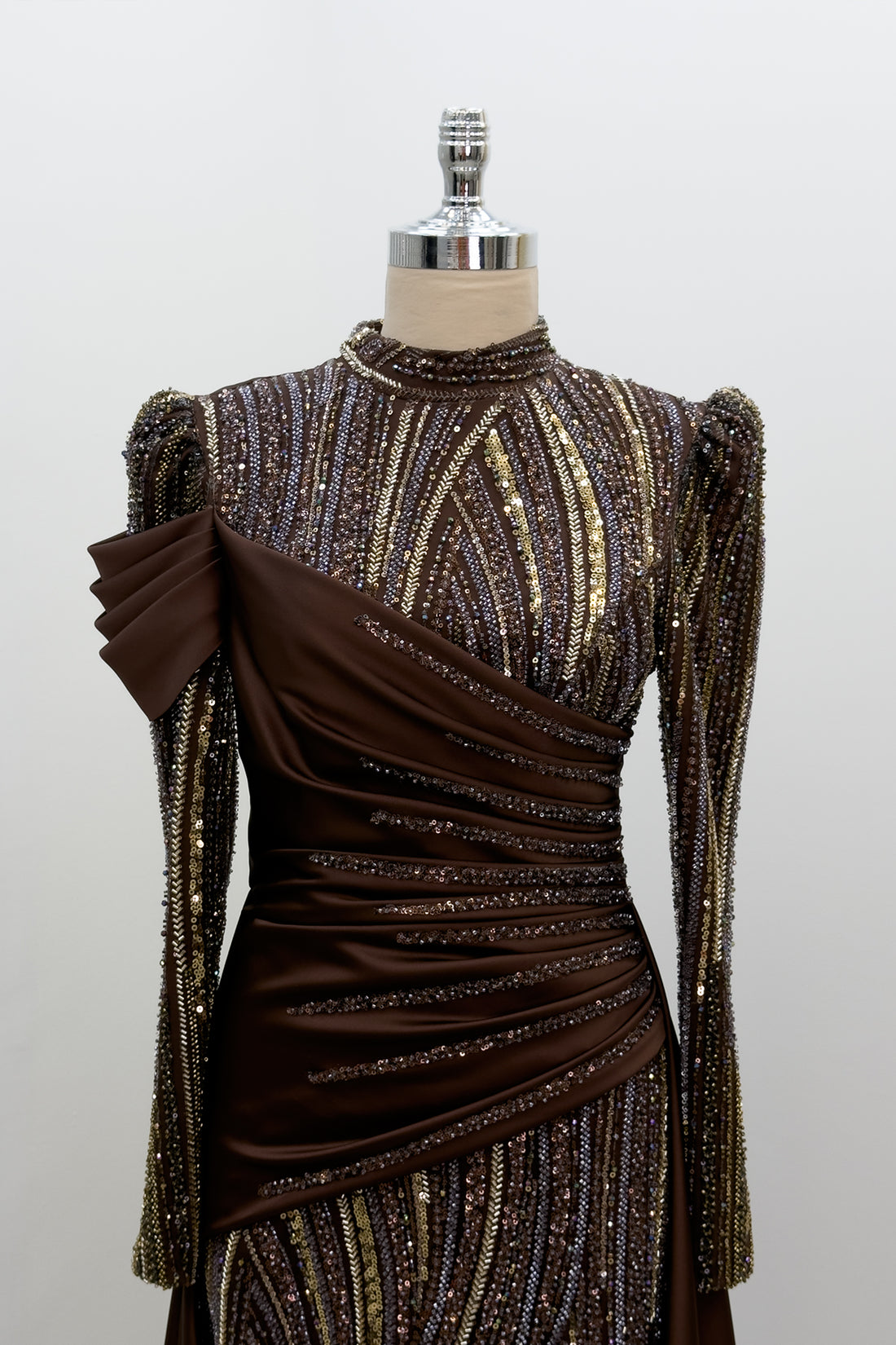 Boncuk Detay Kuyruklu Hailey Abiye - Kahve