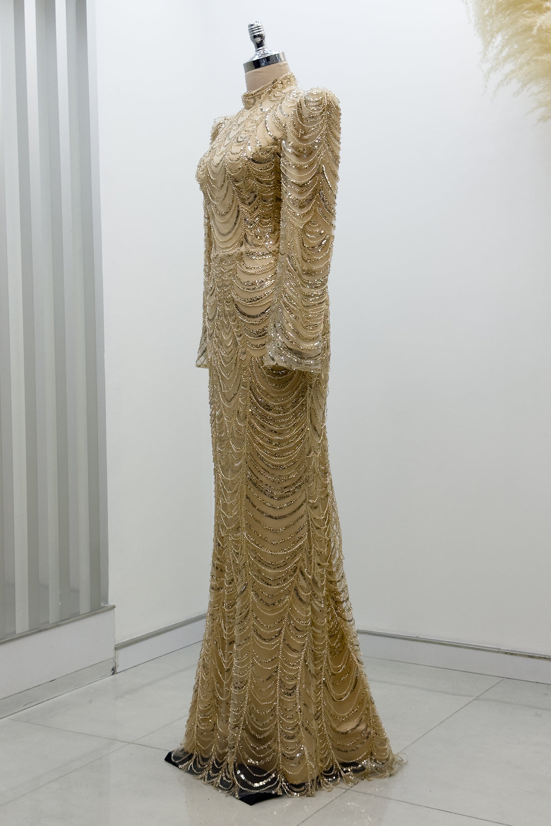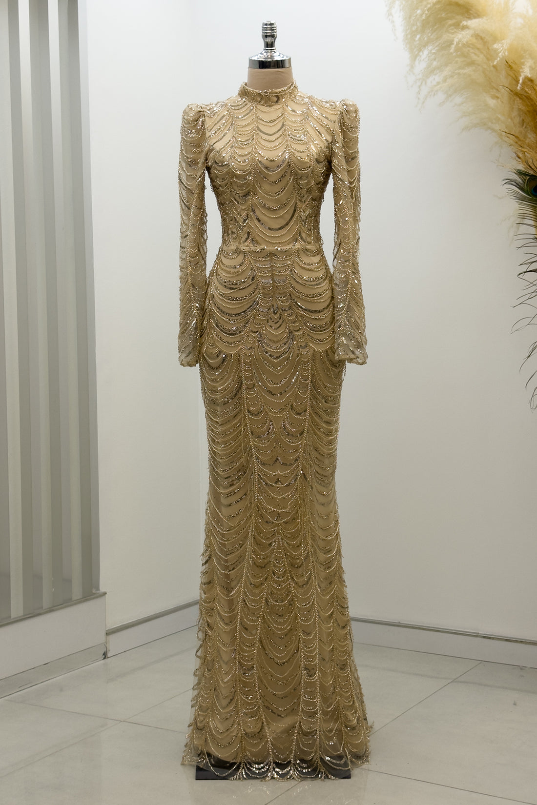 Salkım Boncuk Detay Melinda Abiye - Gold