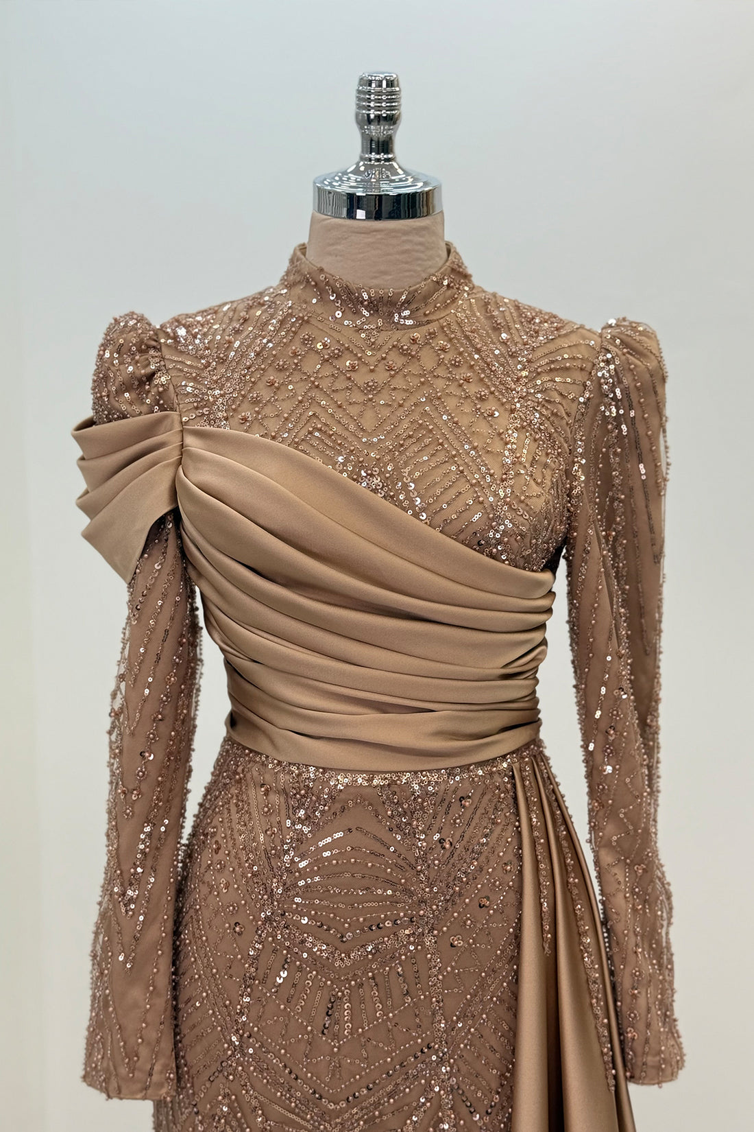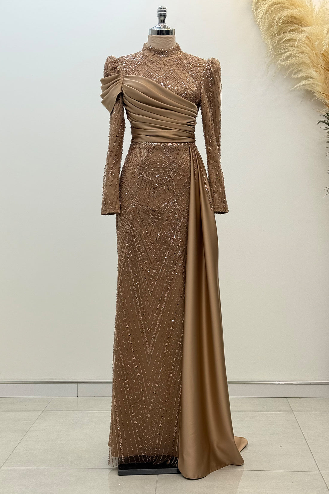Yandan Pelerin Kuyruklu Raysa Abiye - Rose