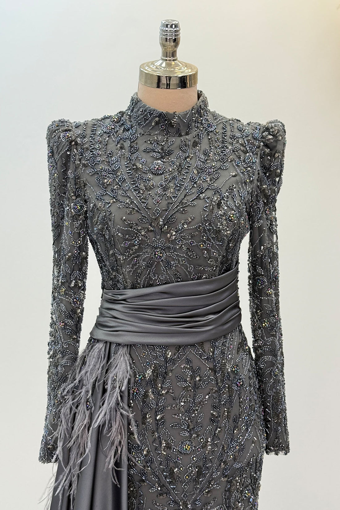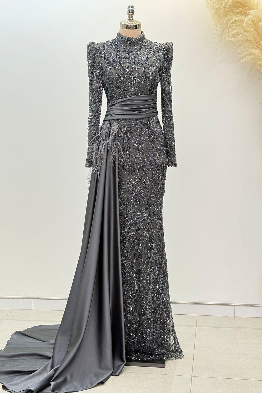 Beli Kuyruk Detay Dantel Zenna Abiye - Gri
